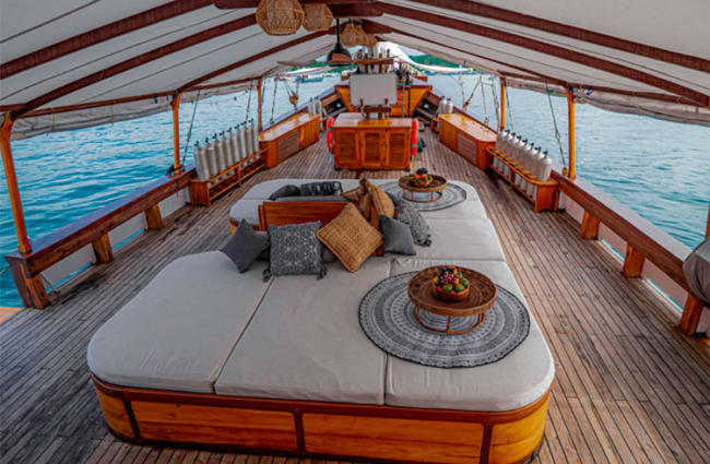 Whether you’re diving into vibrant coral reefs, trekking to see legendary Komodo dragons, or simply unwinding on a secluded beach, every moment on Anne Bonny is crafted for adventure and relaxation, combining traditional Indonesian craftsmanship with modern comforts to create an intimate and luxurious atmosphere.