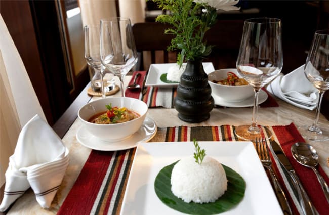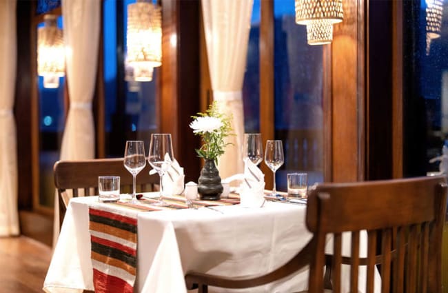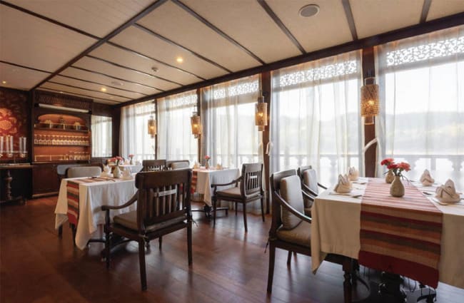 The exquisite De-Lagrée Dining Hall—named after the leader of the French Mekong Expedition of 1866-1868—honors Luang Prabang’s temples and presents five-star cuisine showcasing the rich and flavorful dishes of Laos and Southeast Asia. Your voyage includes à la carte meals and bountiful buffets, alfresco breakfasts and barbecues, sandbank aperitifs and in-suite afternoon teas.
