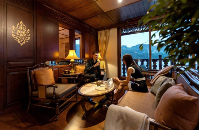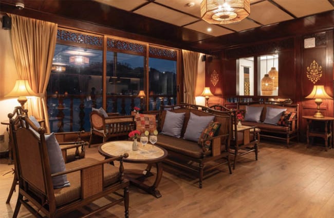 These staterooms are decorated with handpicked Laotian artwork giving them an exquisite look. They also feature large windows with amazing views allowing maximum natural light to flow in the room. The gorgeous bathrooms are equipped with luxurious amenities to ensure guests enjoy their showers.