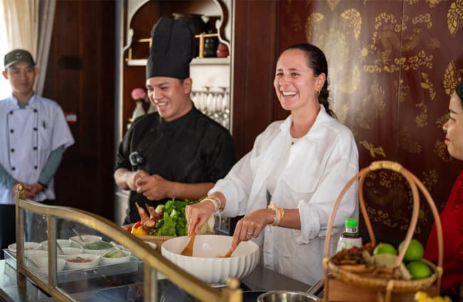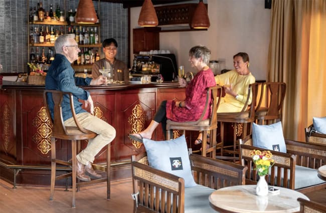 AM: Rise with the sun for the option of an invigorating yoga class. As the ‘Anouvong’ gracefully navigates upstream, indulge your creative side in a bamboo weaving workshop, where you'll craft your own bamboo basket—a cherished memento of this traditional art.
