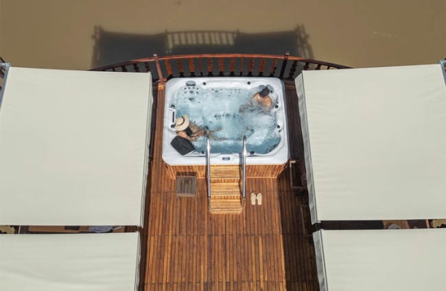 Anouvong exudes an aura of exclusivity with just four Deluxe Staterooms, four Executives, and two sumptuous Signature Suites, occupying both the main and upper decks, with four rooms on each level, all of which are characterized by floor-to-ceiling windows and an attractive French balcony or private terrace overlooking the verdant shores of the Mekong River. The two 30sqm Signature Suites are located at the front of the Main Deck and each has a spacious bathroom with a jacuzzi.