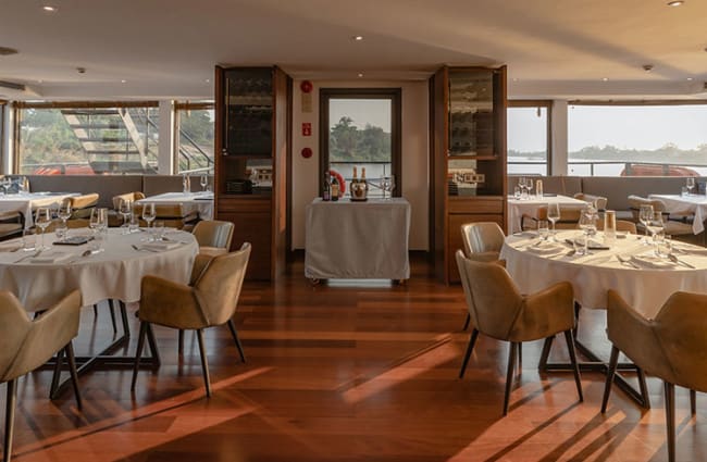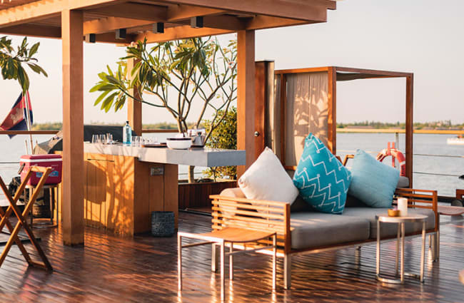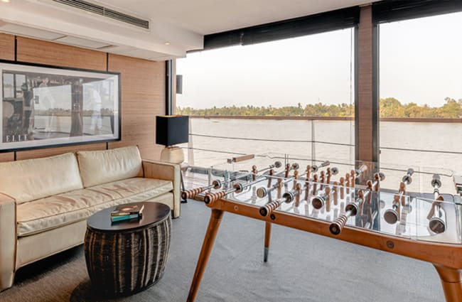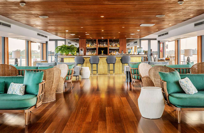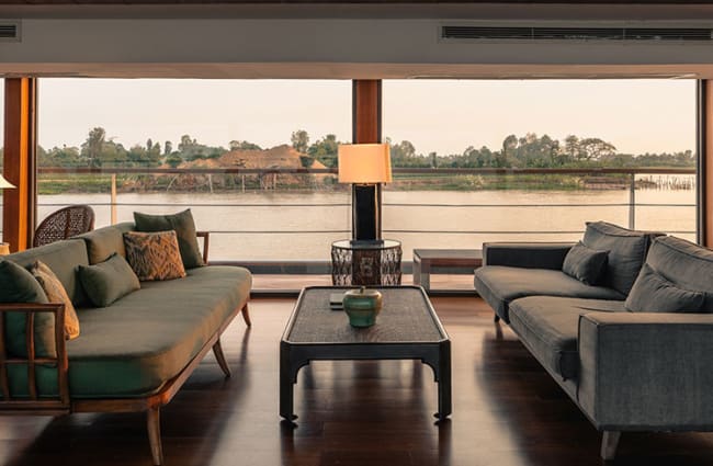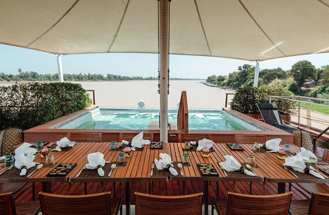 The air-conditioned top-level Observation Deck is designed to connect you with the constantly shifting landscape of floating Vietnamese villages, French colonial church spires, and gilded Buddhist stupas along this mighty river. Relax on the comfortable sun loungers, order a drink from the Rooftop Bar, and drop into the infinity plunge pool in the shaded Outdoor Lounge, which later transforms into a movie theater under the stars. Gravitate to the Indoor Lounge for lectures on ecology, culture, and wildlife.