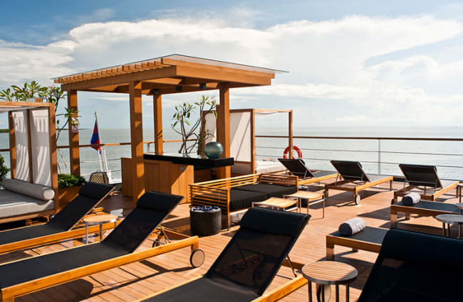 On-board dining is upscale and contemporary. Featuring an Asian-inspired menu created by Michelin-starred chef, David Thompson, who is one of Southeast Asia’s most acclaimed chefs, the cuisine endeavors to incorporate the day’s catch and the market’s freshest seasonal produce. The ship’s innovative cocktail menu echoes a similar locally-minded philosophy.