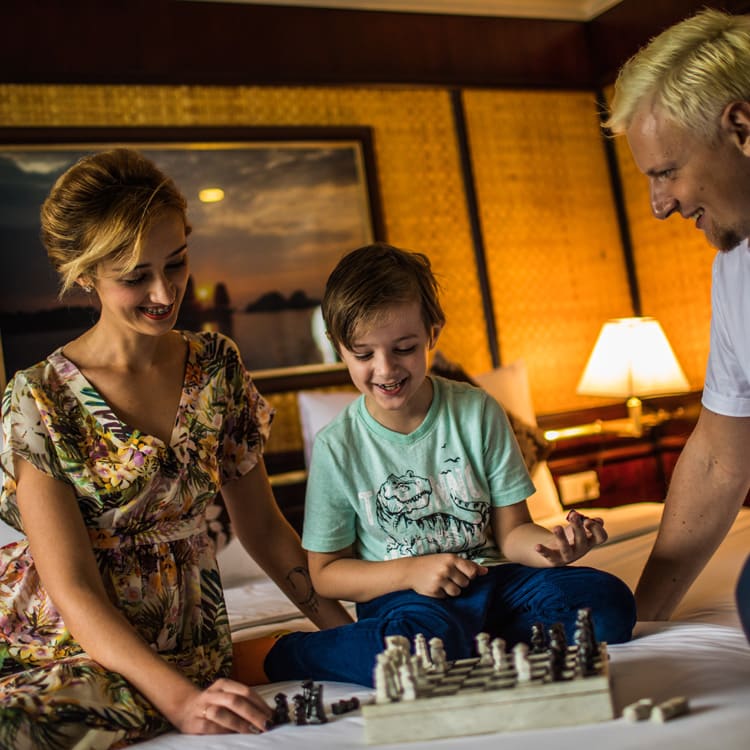 You will be well taken care of from the moment you are picked up at your hotel in Hanoi. You will be greeted at the cruise centre by friendly faces, a cold towel and welcome drink. Your crew will include your captain, cruise manager, personal butler and private chef.