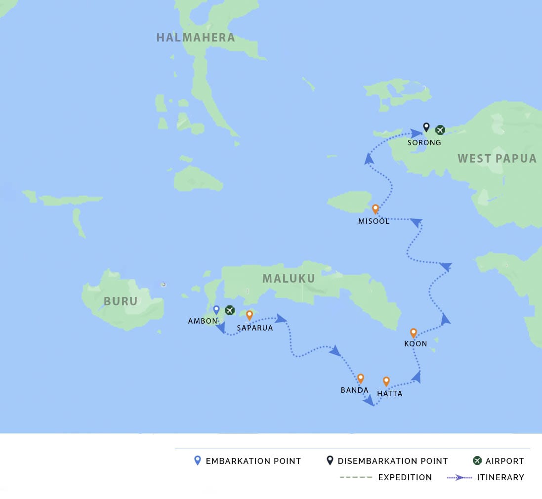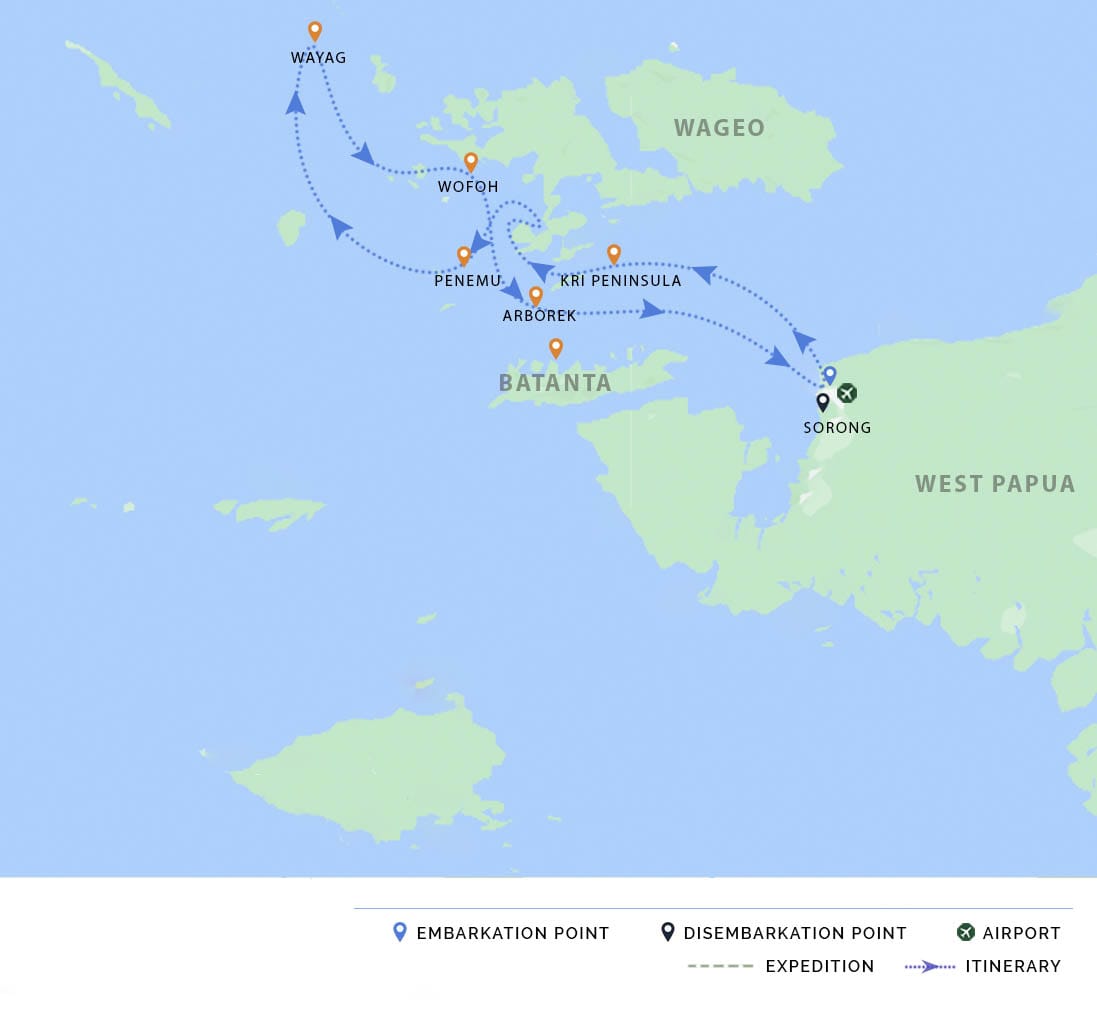 PM: After lunch, we head to Dayang Island, where we dedicate the afternoon to relaxation and water activities. Enjoy our last Raja Ampat sunset surrounded by the sounds of the rainforest. In the afternoon, Celestia embarks on a crossing to Sorong where we will arrive in the night.