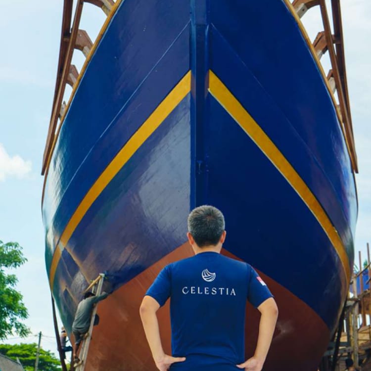 Handcrafted by the legendary Bulukumba boatbuilders, renowned for their master shipbuilding skills, Celestia combines UNESCO-recognized building traditions with an elegant design, high-end amenities, and first class hospitality.