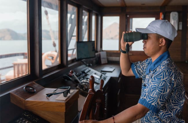 Her seven spacious, air-conditioned cabins sleep up to 14 guests, with those on the upper deck featuring floor-to-ceiling windows and private balconies with panoramic views. All come decked with custom furnishings acquired from emerging Indonesian designers and tastefully accented with pieces sourced from Balinese artisans. The en suite bathrooms even feature seat warmers and Villeroy & Boch finishings.