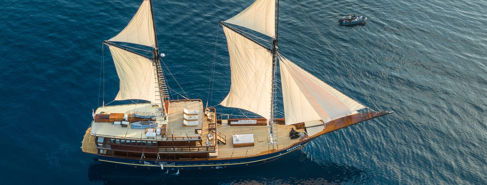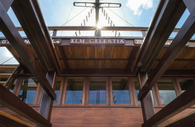 The 148-foot Celestia yacht, whose name translates to “heavenly” in Latin, is a new, luxurious seven-sailed schooner honoring its Indonesian heritage with a traditional twin-masted phinisi design, and offering guests ambrosial adventures around the Indonesian archipelago—from four- and five-day charter trips in the Komodo National Park, to weeklong sailings around Raja Ampat, the Spice Islands and other destinations in the Coral Triangle.