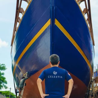 Handcrafted by the legendary Bulukumba boatbuilders, renowned for their master shipbuilding skills, Celestia combines UNESCO-recognized building traditions with an elegant design, high-end amenities, and first class hospitality.