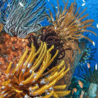 AM & PM: After another overnight crossing, we arrive in the heart of the spice islands, the small archipelago of Banda famous for its nutmeg that used to be worth more than gold. One morning will be spent on-land walking around the village of Banda Neira with our cruise director visiting the local museum, Fort Belgica and a walk through an old Nutmeg plantation. Most of the dive sites around the Banda islands are wall dives. The walls are covered in massive gorgonians, soft corals, and barrel sponges. Other dive sites are offering pinnacles with large groups of schooling pyramid butterfly fish, triggerfish and large pelagic fishes such as tuna. Great muck dives will also be on our schedule along the slope of gunung Api or under a local jetty to spot mandarin fishes. Depending of our schedule, we will be sailing to the island of Suanggi on our way to Ambon for an additional dive on this pristine and deserted island.