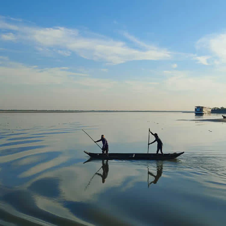 AM: This morning you’ll drive up Nilachal Hill to see the holy Kamakhya temple. With its tantric rites and animal sacrifice, the more squeamish may prefer to content themselves with the exteriors. Visit the poignant Commonwealth War Graves cemetery before embarking on your cruise vessel at Uzan Bazaar.