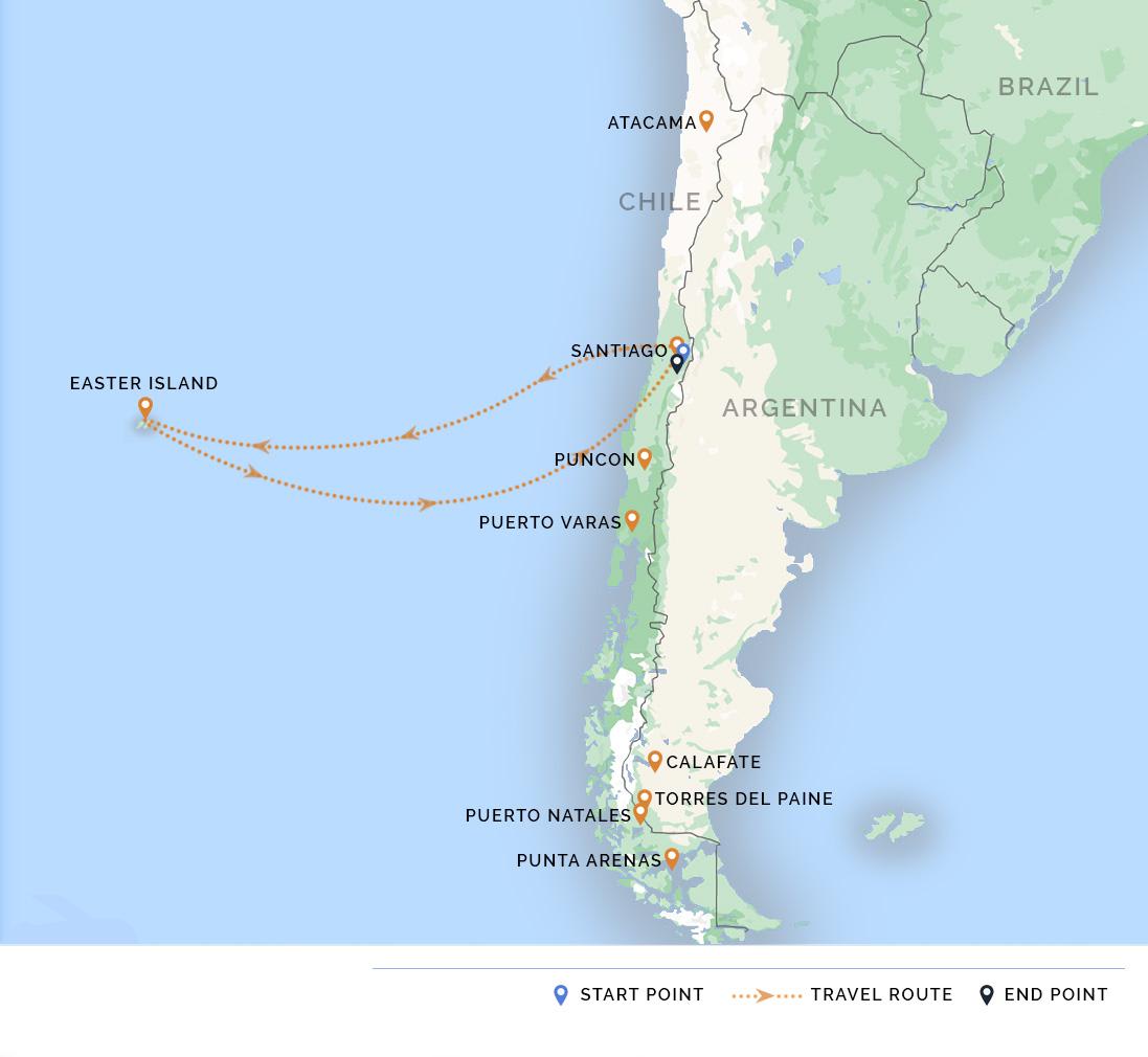 This classic 8-day Chile and Easter Island itinerary takes you from Santiago de Chile to the enigmatic Easter Island. Enjoy the modern and historical highlights of Chile’s sophisticated and eclectic capital city, then head to Easter Island, aka Rapa Nui, in the Pacific Ocean for a chance to marvel at the moai, the giant human forms carved from stone. Learn about the heritage of the Rapa Nui people, the island’s native Polynesians.