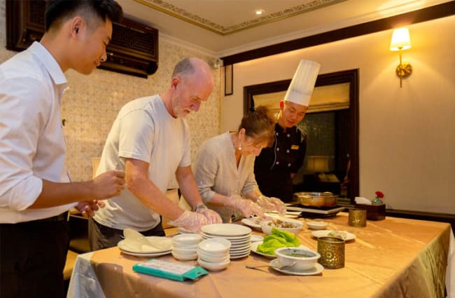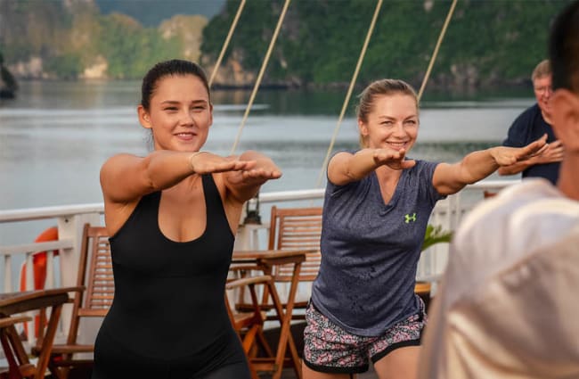 Activities include excursions on a bamboo rowing boat to a fishing village, a walk to a hill top view point, hiking and kayaking, squid fishing, a trip to Halong Bay’s largest cave and a floating pearl farm. Tai Chi classes, talks and presentations on the local culture, and Vietnamese cooking classes are available daily. Watching the sunset over Halong Bay with a signature cocktail such as ‘The Heritage’ or the ‘Halong Fantasy’ is an unforgettable experience from Violet’s deck.