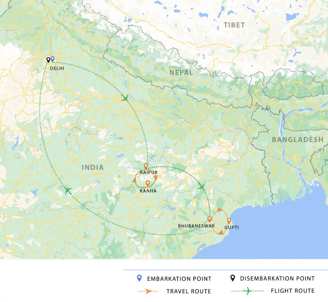 AM: After early breakfast, drive to Raipur airport (approx. 4-hrs) for your flight to Bhubaneswar. Arrive and transfer to your hotel.