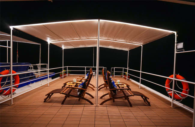 The catamaran also features a panoramic sun deck for wildlife viewing, a lounge-cum-dining area for intimate meals and educational wildlife talks, and a scratch kitchen where a private chef crafts delightful local delicacies. Welcome drinks, cooking classes, and shore programs with cold towel services post-excursion enhance your overall experience.