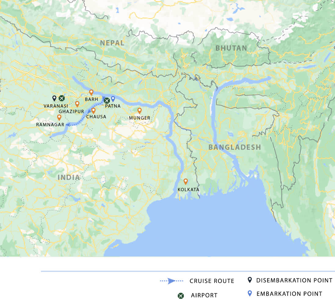 AM: After breakfast, disembark and transfer to the airport or your hotel in Kolkata.