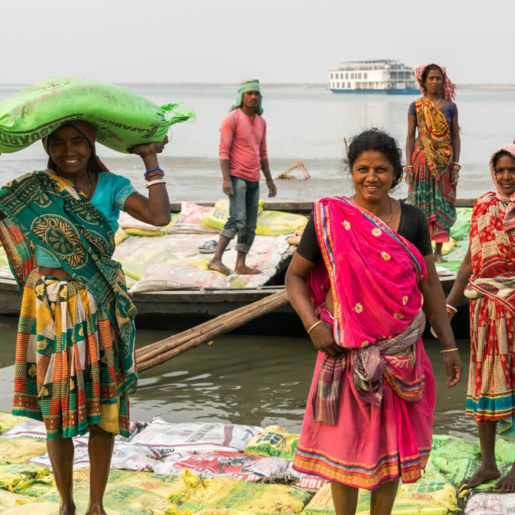 AM & PM: Setting sail this morning you travel along a stretch of river where the endangered Gangetic Dolphin may be seen. Land at Bhagalpur, a centre of silk production, to visit the silk-weaving village and an elegant 18th century mansion built by Augustus Clevland, the collector and magistrate of the town back in the day. You’ll then continue on to Jahangira Island at Sultanganj, a place of pilgrimage with early Hindu carvings in the rock. On shore, another picturesque rock is topped with a mosque, and the stop offers a chance to stroll around the vibrant local market.