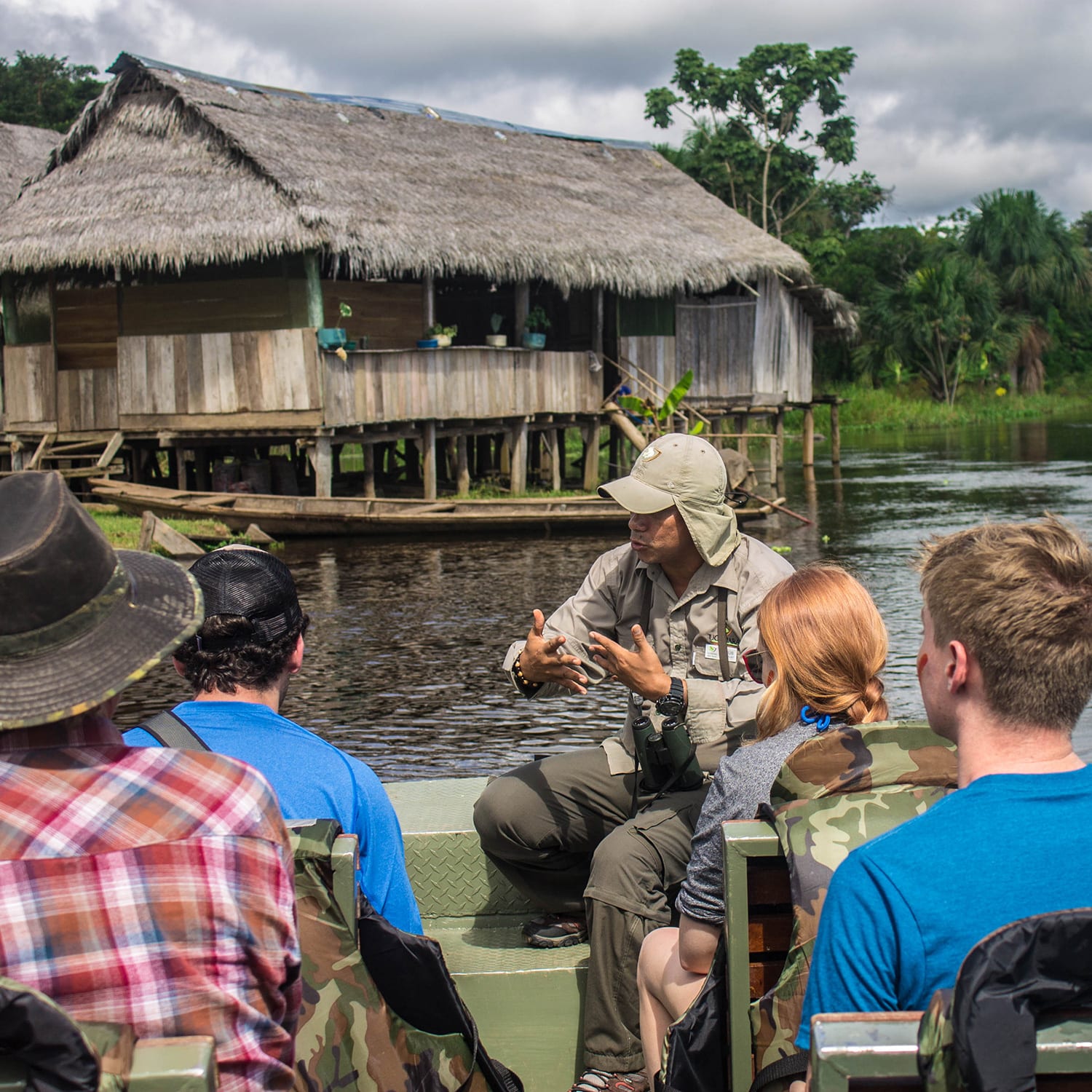 Two expert English-speaking guides lead a variety of activities designed to allow you to interact with the wildlife and people of the Amazon. Explore the Nauta Caño Creek, either by kayak or aboard a skiff boat equipped with an outboard motor, and look for monkeys and rare birds. Then, visit a local village to learn about hunting, fishing, and farming traditions.