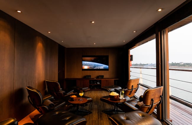 The air-conditioned top-level Observation Deck is designed to connect you with the constantly shifting landscape of floating Vietnamese villages, French colonial church spires, and gilded Buddhist stupas along this mighty river. Relax on the comfortable sun loungers, order a drink from the Rooftop Bar, and drop into the infinity plunge pool in the shaded Outdoor Lounge, which later transforms into a movie theater under the stars. Gravitate to the Indoor Lounge for lectures on ecology, culture, and wildlife.