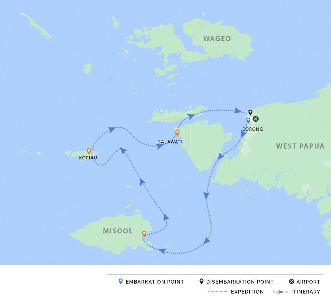 PM: After lunch, we head to Dayang Island, where we dedicate the afternoon to relaxation and water activities. Enjoy our last Raja Ampat sunset surrounded by the sounds of the rainforest. In the afternoon, Celestia embarks on a crossing to Sorong where we will arrive in the night.