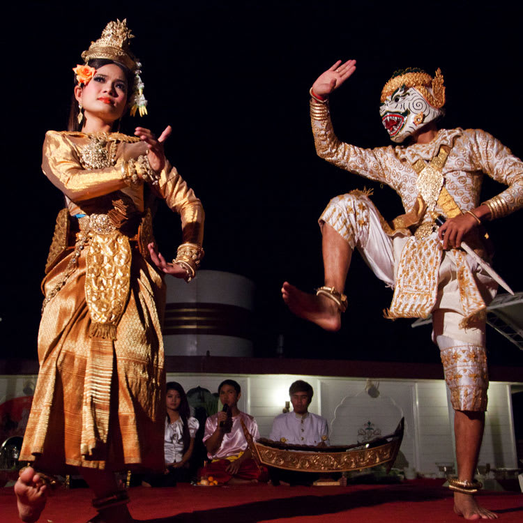 PM: In the evening, we invite you to an engaging expert lecture in the lounge. To cap off this eventful day, we'll indulge in a delightful open-air barbecue and gala dinner accompanied by a classic Apsara dance performance. Afterward, feel free to explore the city at night, savouring Phnom Penh's vibrant nightlife or taking in the lively river promenade.